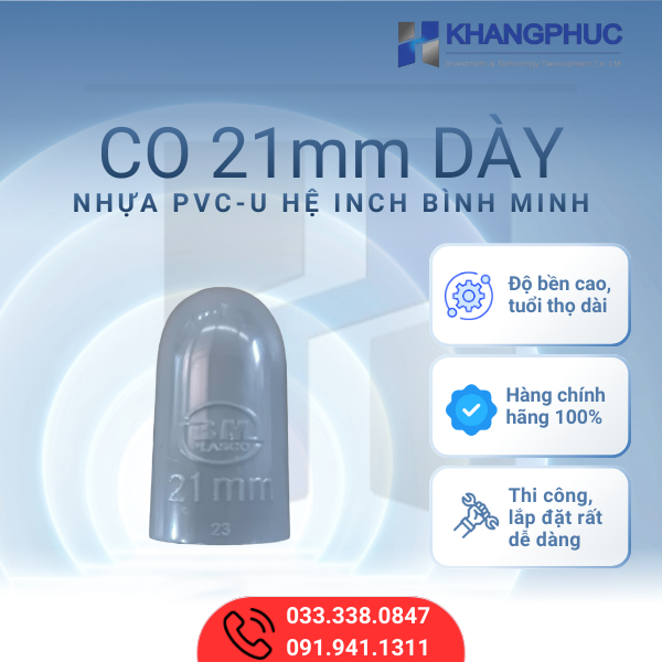 Ưu điểm nổi bật của Co/Cút 21mm Dày nhựa PVC-U Bình Minh: