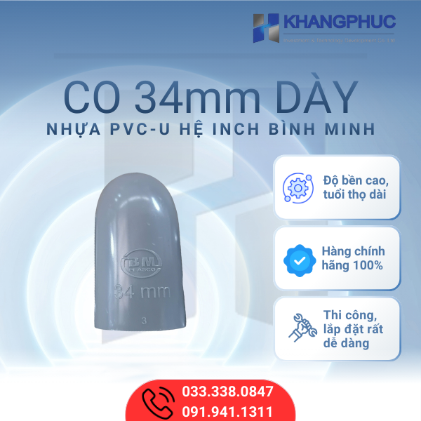 Để được tư vấn và báo giá chi tiết về Co/Cút 34mm Dày nhựa PVC-U Bình Minh
