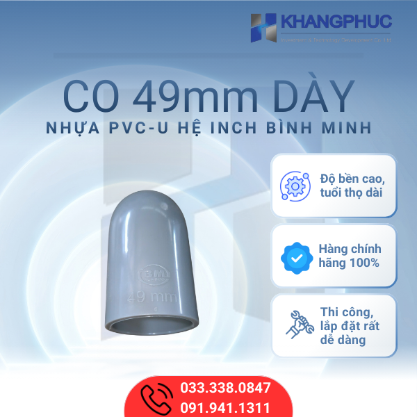 Ưu điểm nổi bật của Co/Cút 49mm Dày nhựa PVC-U Bình Minh: