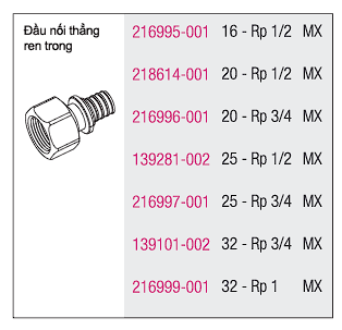 . Đầu Nối Thẳng Ren Trong (Couplings - Kết nối thẳng) - Rehau