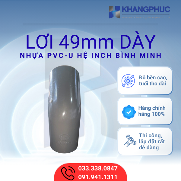 Ưu điểm nổi bật của Lơi/Chếch 49mm Dày nhựa PVC-U Bình Minh: