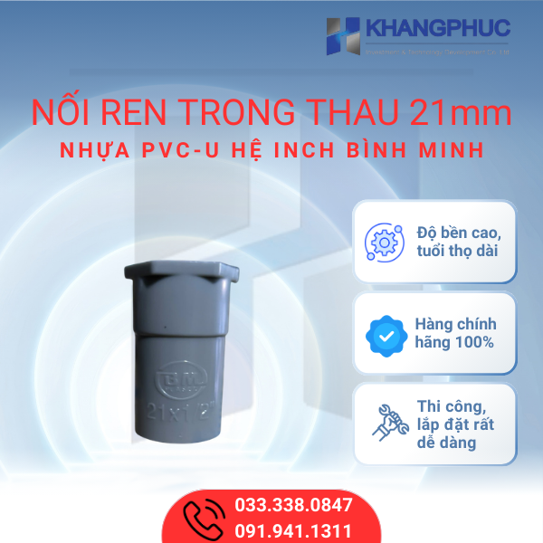 Vì sao nên mua Nối Ren Trong Thau Phi 21 Dày nhựa PVC-U Bình Minh tại Khang Phúc?