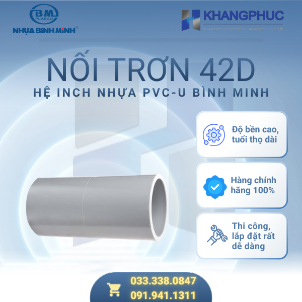 | Tên sản phẩm | Nối trơn Phi 42 Dày nhựa PVC-U hệ Inch Bình Minh |