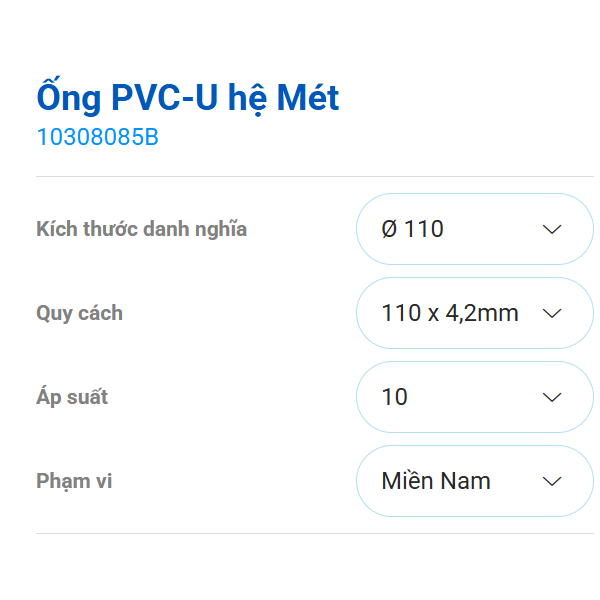 Ống 110 x 4.2mm nhựa PVC-U hệ Mét |