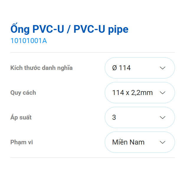 Ống 114 x 2.2mm nhựa PVC-U hệ Inch mở rộng |