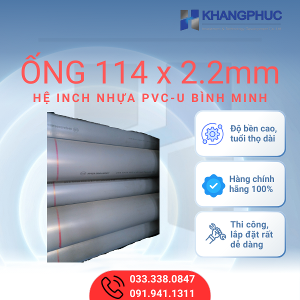 Ưu điểm nổi bật của Ống 114 x 2.2mm nhựa PVC-U Bình Minh: