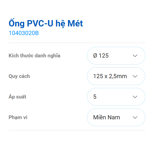 Ống 125 x 2.5mm nhựa PVC-U hệ Mét |