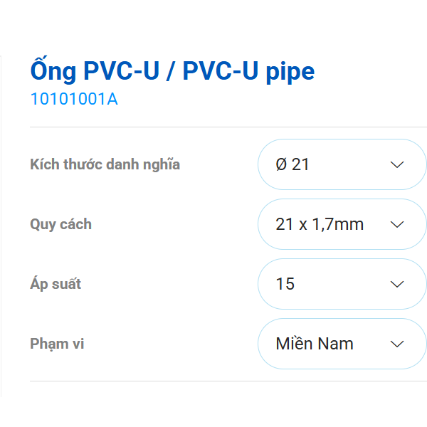 Ống 21 x 1.3mm nhựa PVC-U hệ Inch mở rộng |