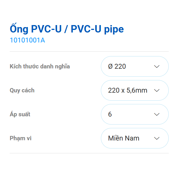 Ống 220 x 5.6mm nhựa PVC-U hệ Inch mở rộng |