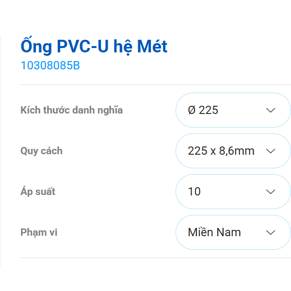 Ống 225 x 8.6mm nhựa PVC-U hệ Mét |