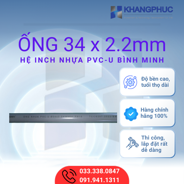 Ưu điểm nổi bật của Ống 34 x 2.2mm nhựa PVC-U Bình Minh: