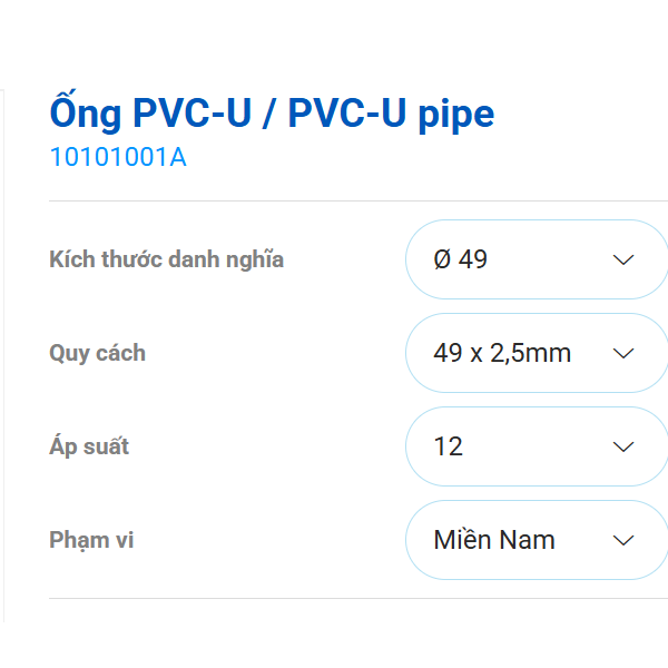 Ống 49 x 2.5mm nhựa PVC-U hệ Inch mở rộng |