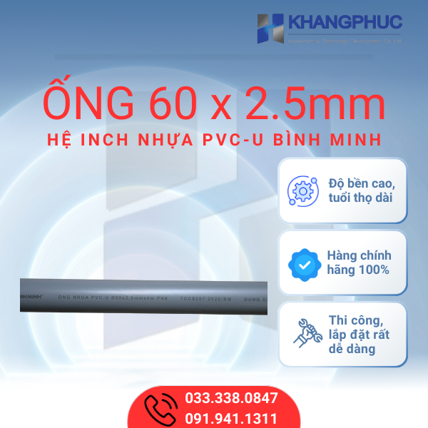 Để được tư vấn và báo giá chi tiết về Ống 60 x 2.5mm nhựa PVC-U Bình Minh