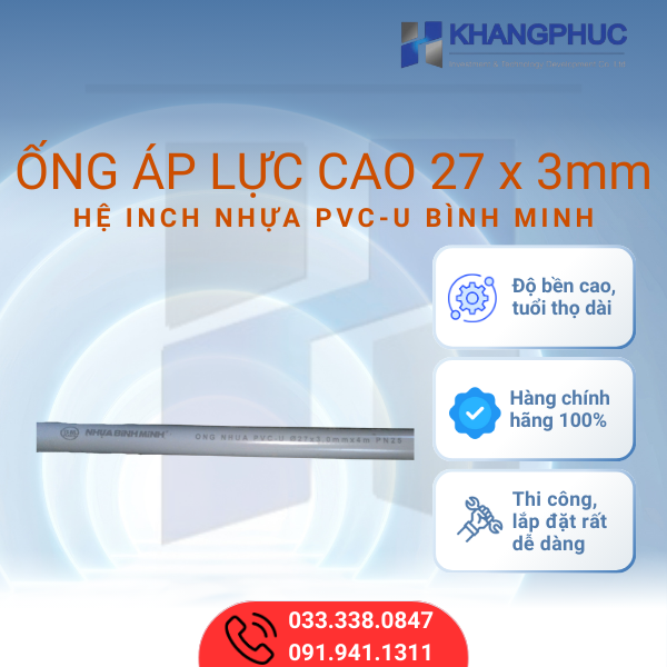 Để được tư vấn và báo giá chi tiết về Ống áp lực cao 27 x 3mm nhựa PVC-U Bình Minh