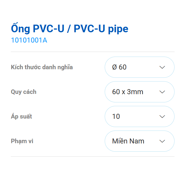 >Cửa hàng>Bình Minh>Ống áp lực cao 60 x 3mm PN10 nhựa PVC-U Bình Minh