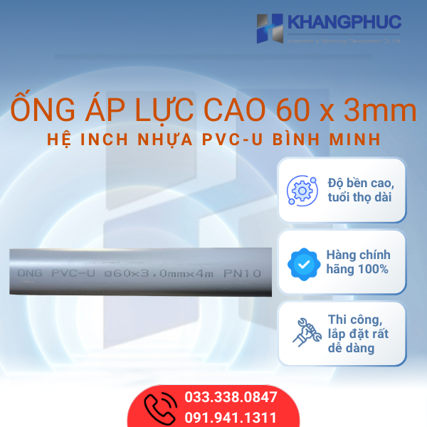Để được tư vấn và báo giá chi tiết về Ống áp lực cao 60 x 3mm nhựa PVC-U Bình Minh